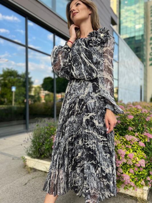 -40%Дамска Вталена Рокля с Абстрактен Принт