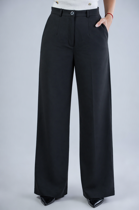 Дамска Елегантна Рокля с Яка, Жабо и Вталена Кройка (Черно/Бяло)