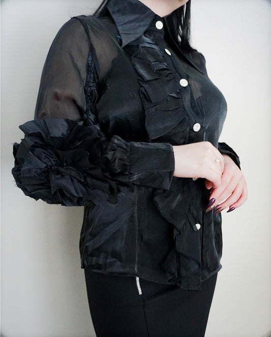 Дамска елегантна прозрачна риза с акцент роза