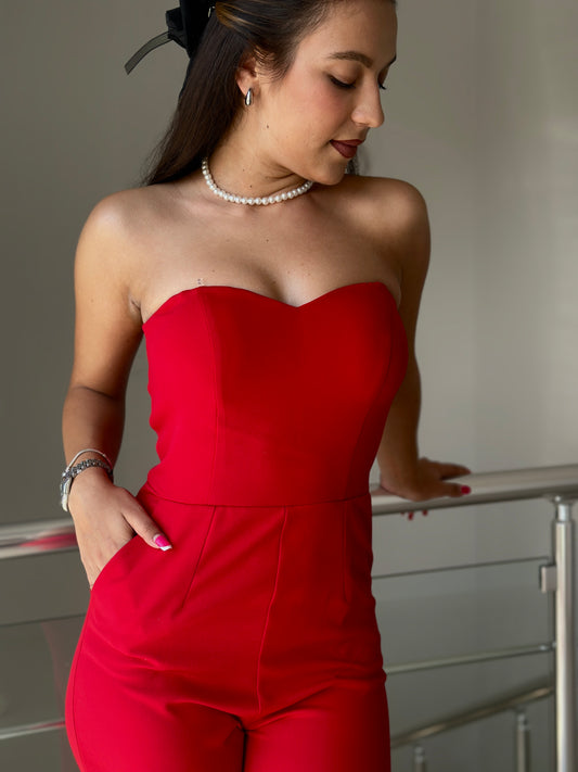 -20%Дамски Елегантен Гащеризон с Бюстие (Червен)