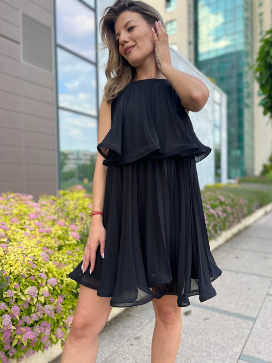 Дамска разкроена рокля на етажи