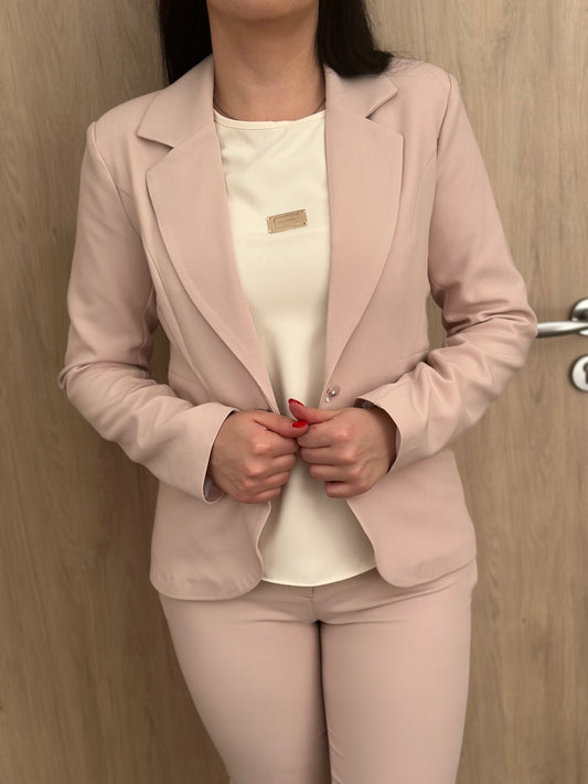 -20%Дамско Сако с Вталена Кройка в Цвят Пудра
