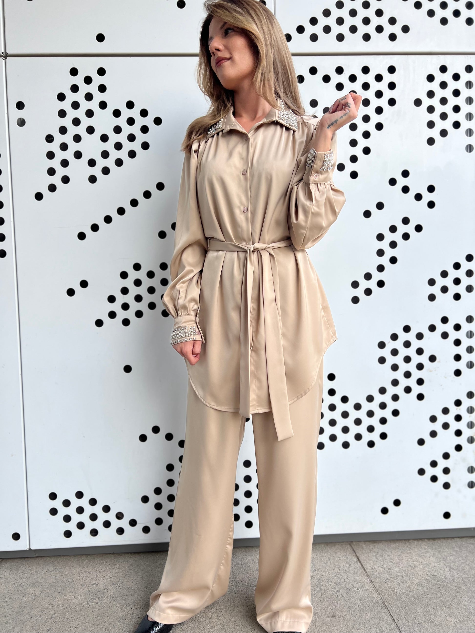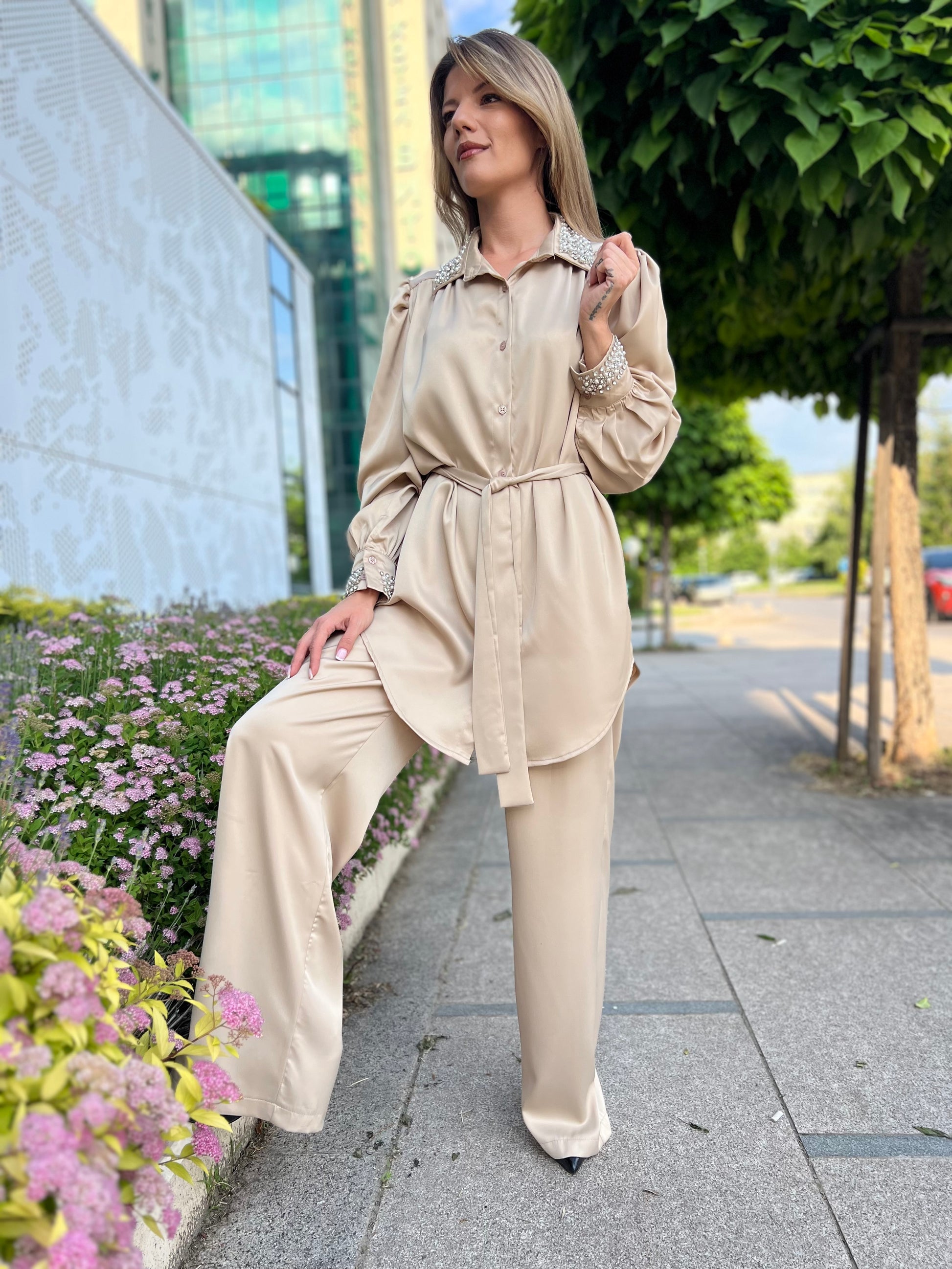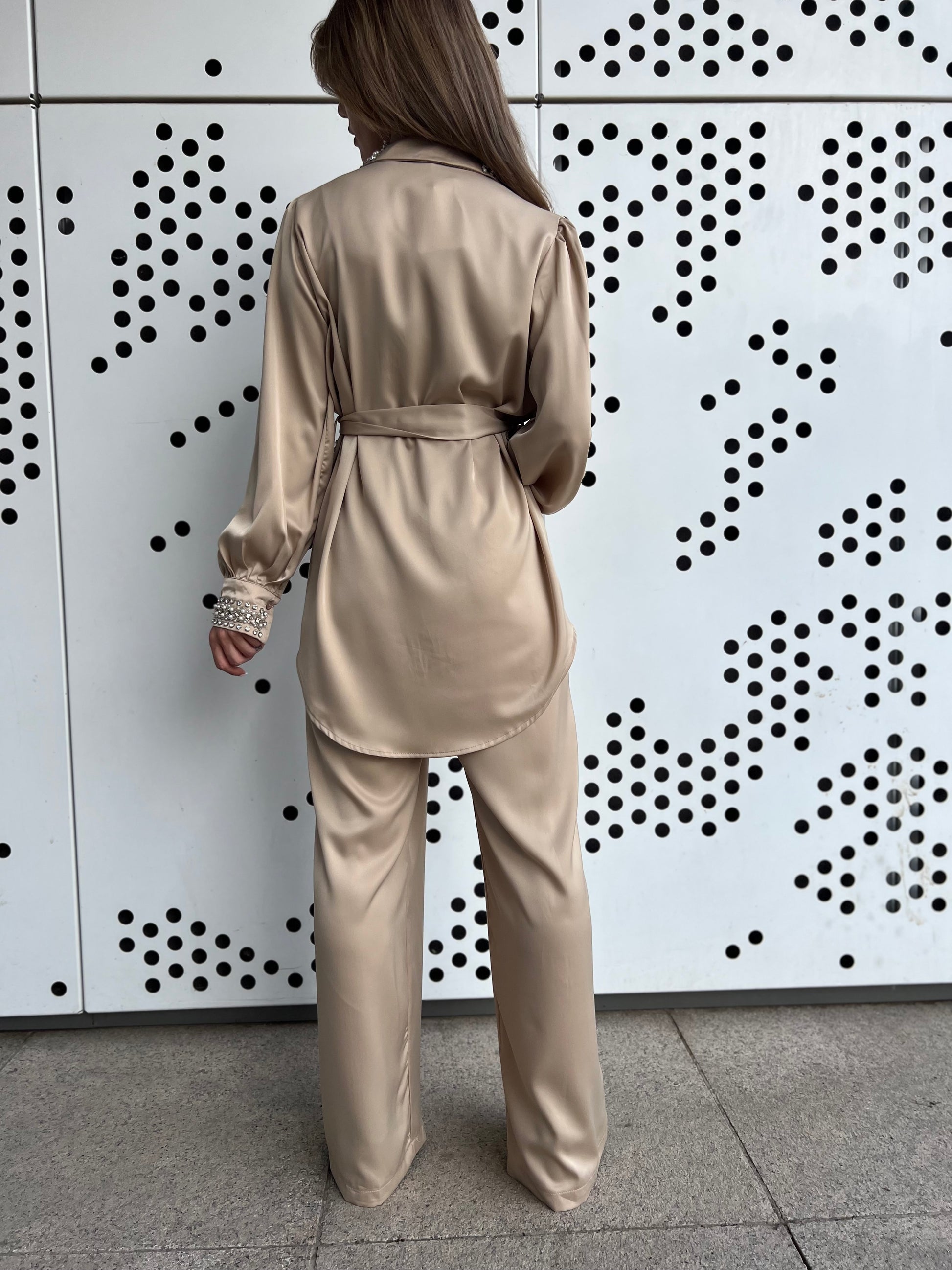 - Долна част - широк панталон с висока талия, с широк ластик на кръста