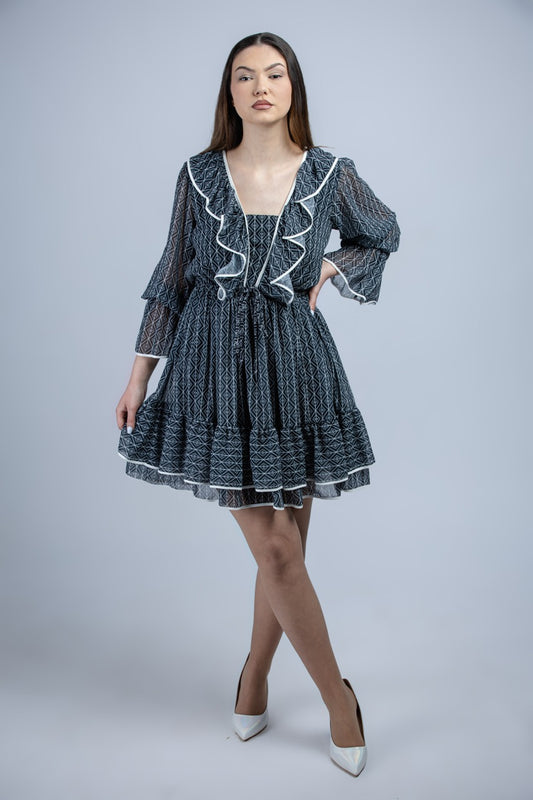 Дамска разкроена рокля на етажи